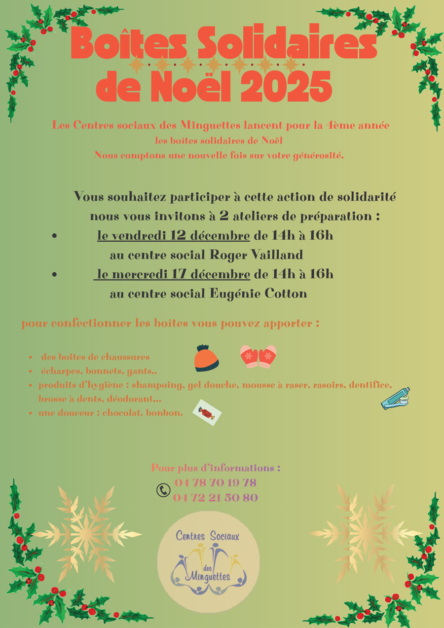 Les Centres sociaux des Minguettes lancent pour la 4ème année l’opération des boîtes solidaires de Noël